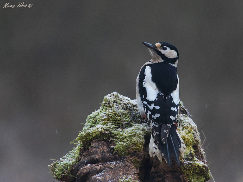 ... majd egy nagy fakopáncs is nagyokat "harap" a friss hóból: